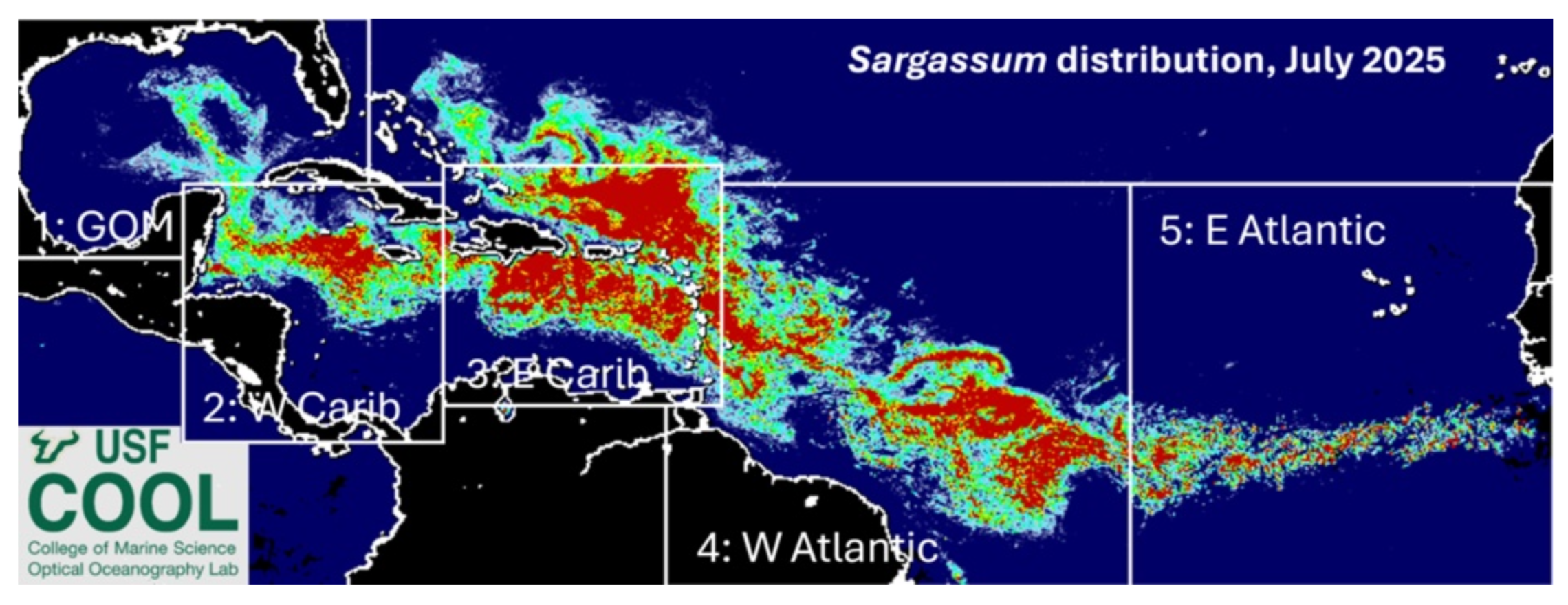 ‘ Wetenschappers geloven dat de “Great Atlantic Sargassum Belt” zal blijven groeien door een combinatie van factoren, waaronder de instroom van voedingsstoffen door rivier uitstroming, voornamelijk vanuit de Amazone, én door opwellende stromingen vanuit de kust van West-Afrika.‘